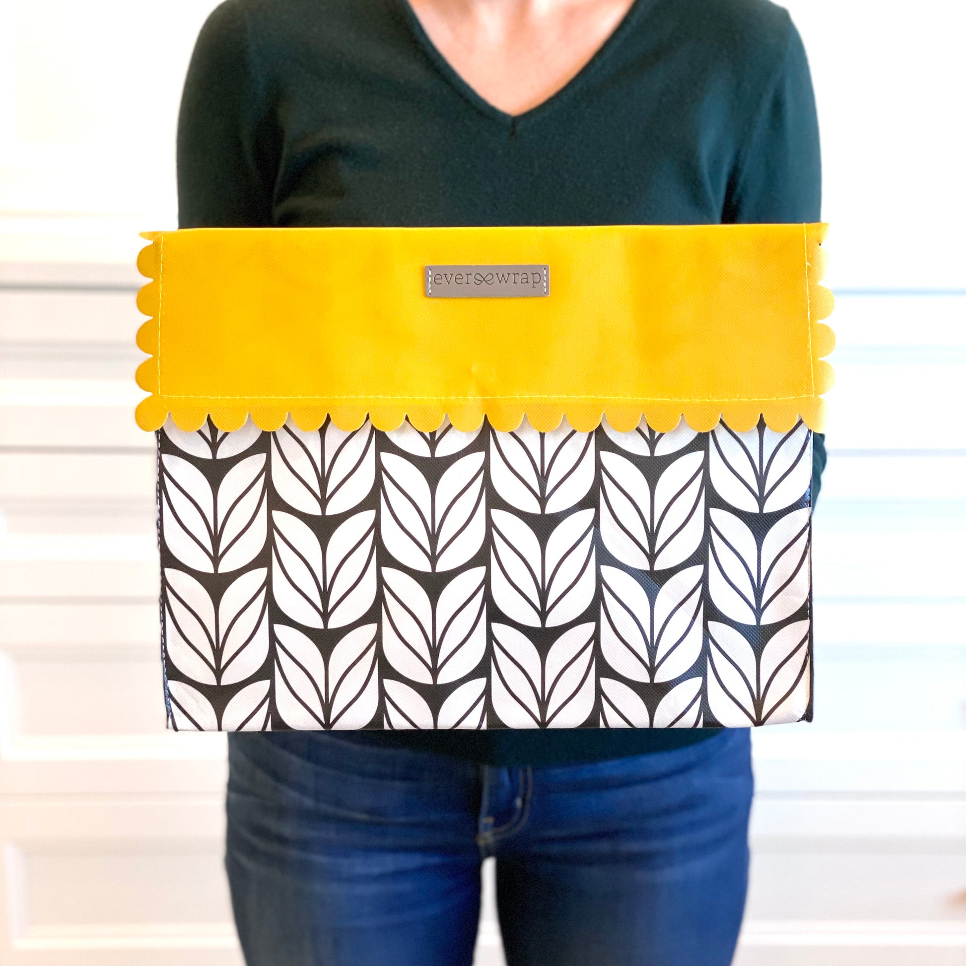 EverEnvelope: Medium Black, White, & Marigold Reusable Gift Bag with Magnetic Closure (Reusable Gift Wrap Bags – Sustainable, Foldable, Eco-Friendly)